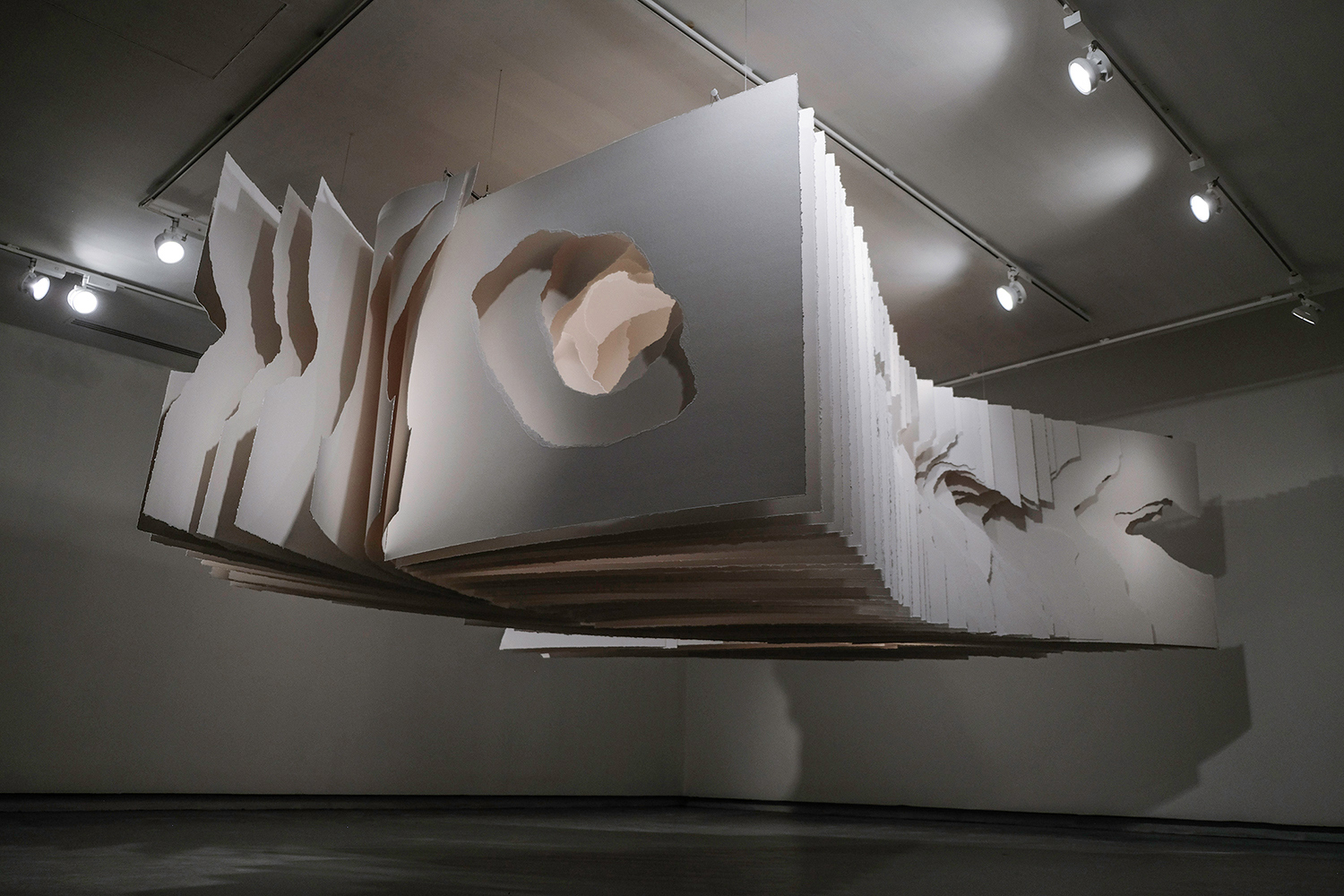 Site specific installation, paper 450g, torn, metal mounting, 127 x 460 x 480 cm,